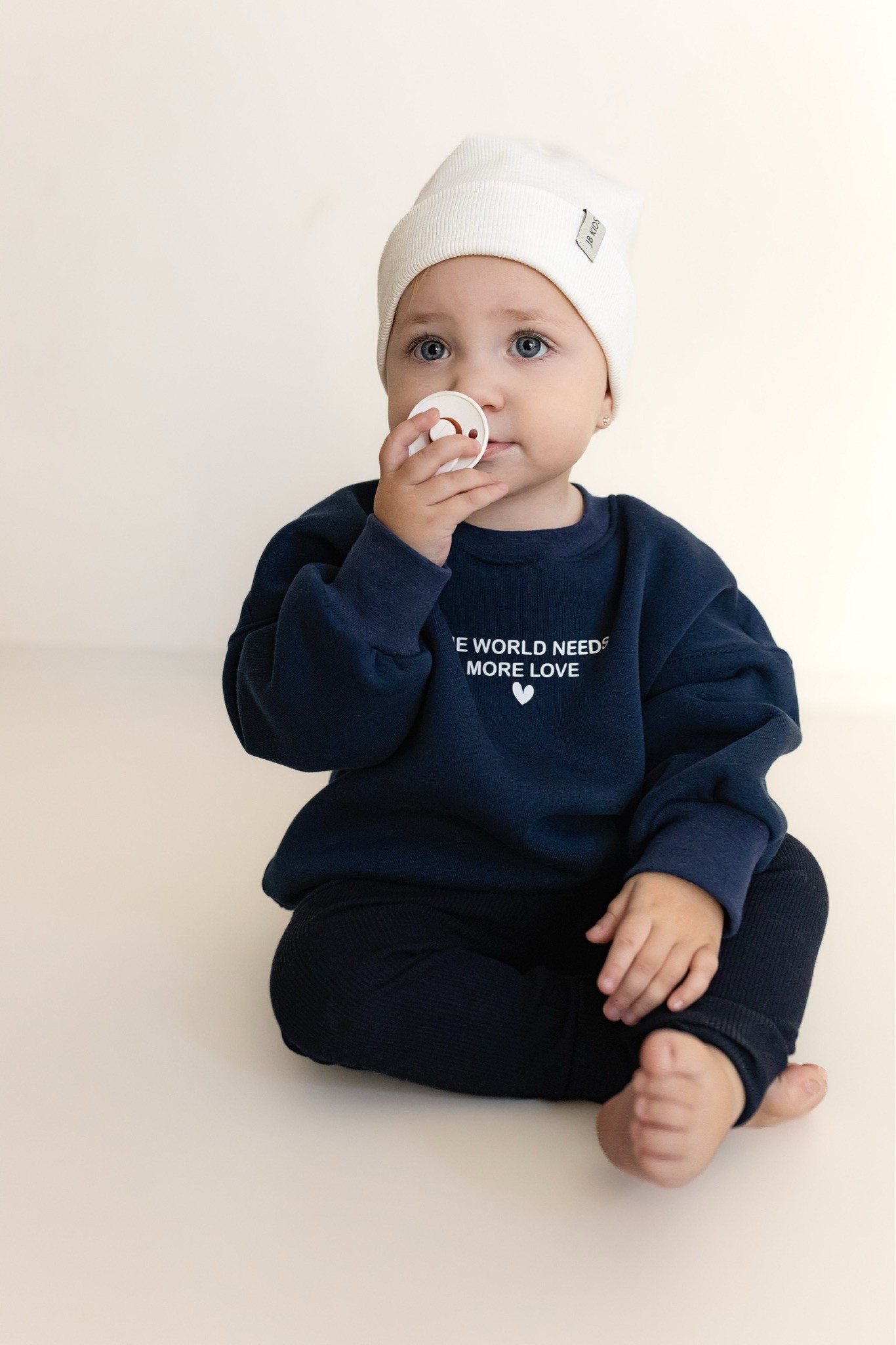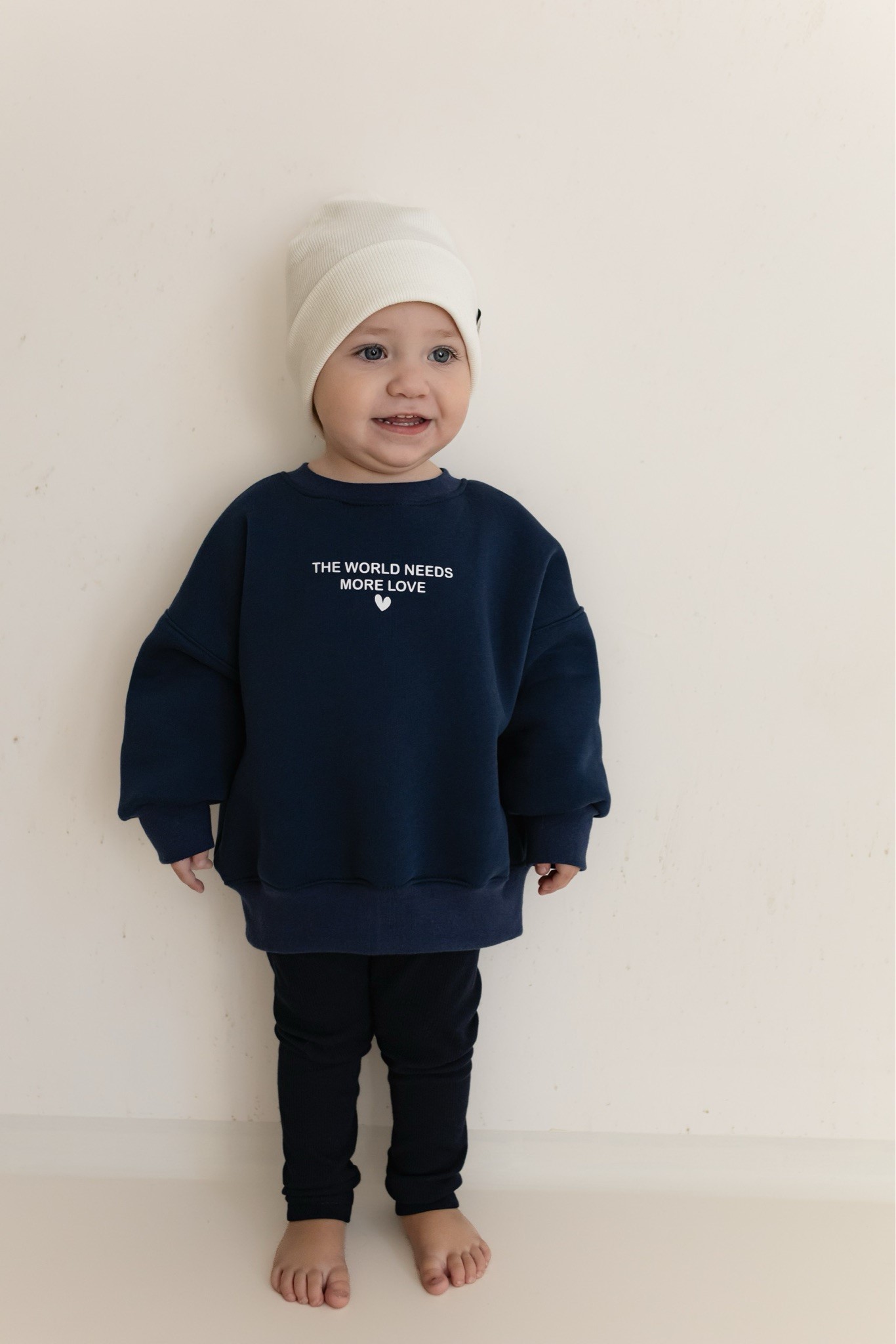 Unser Mini-Model trägt die passende Leggins in der Farbe Navy/Dark-Blue.