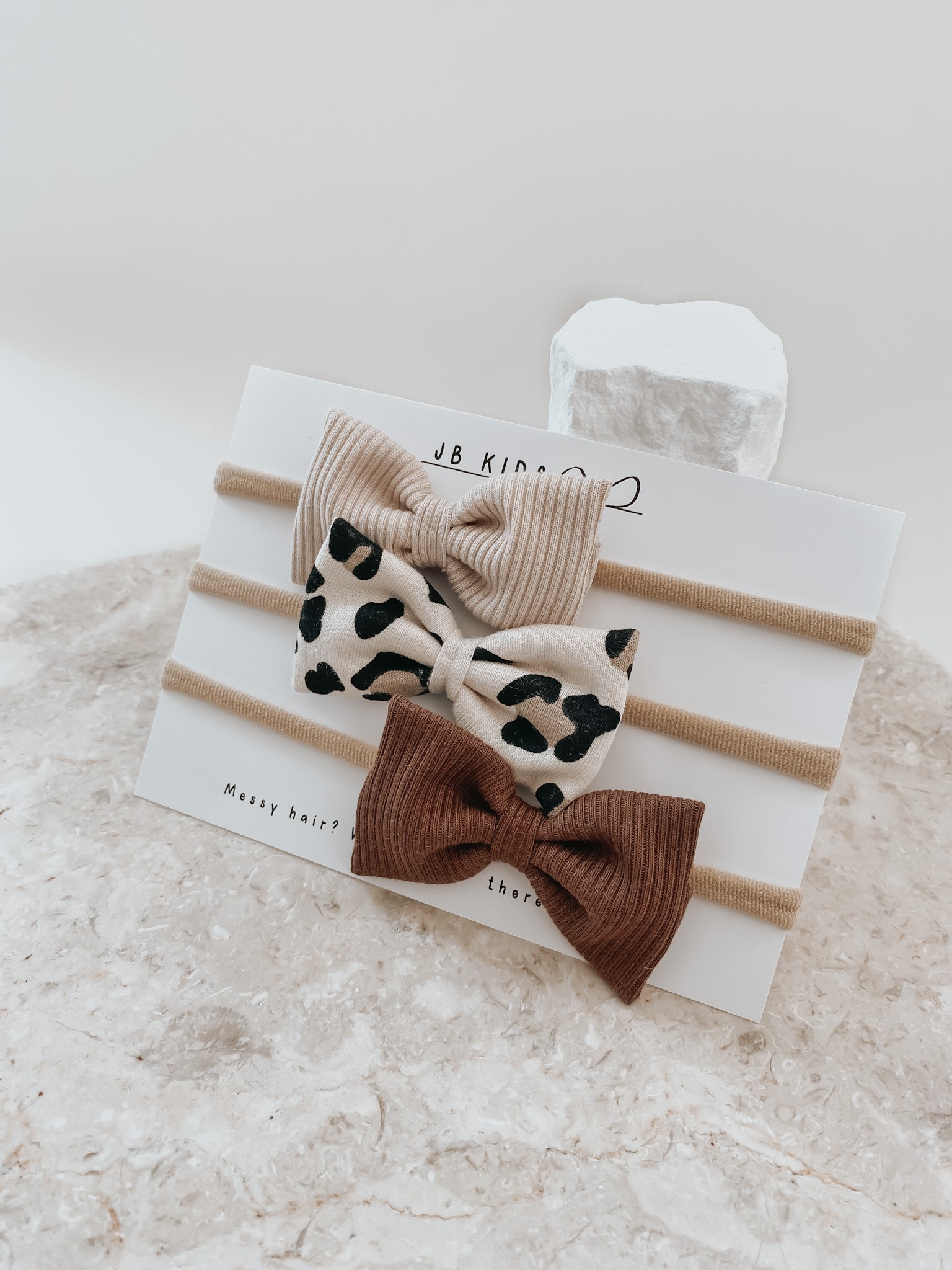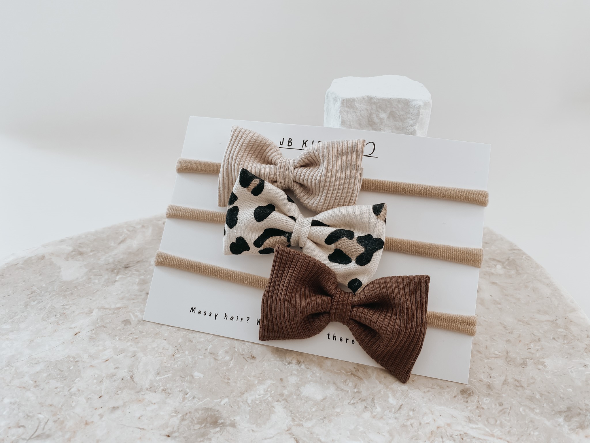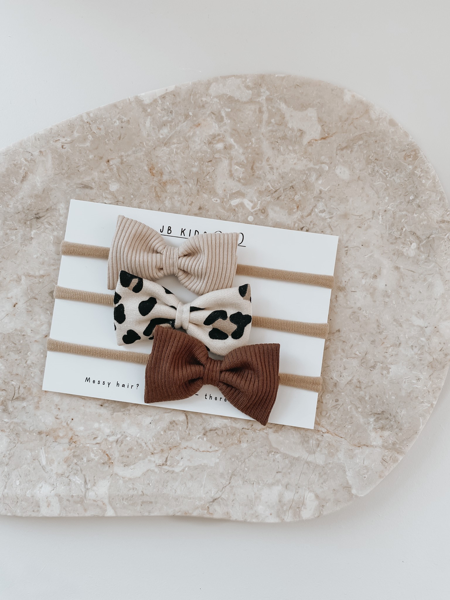 3er Set Haarschleifen – Leo, Hellbeige & Chocolat